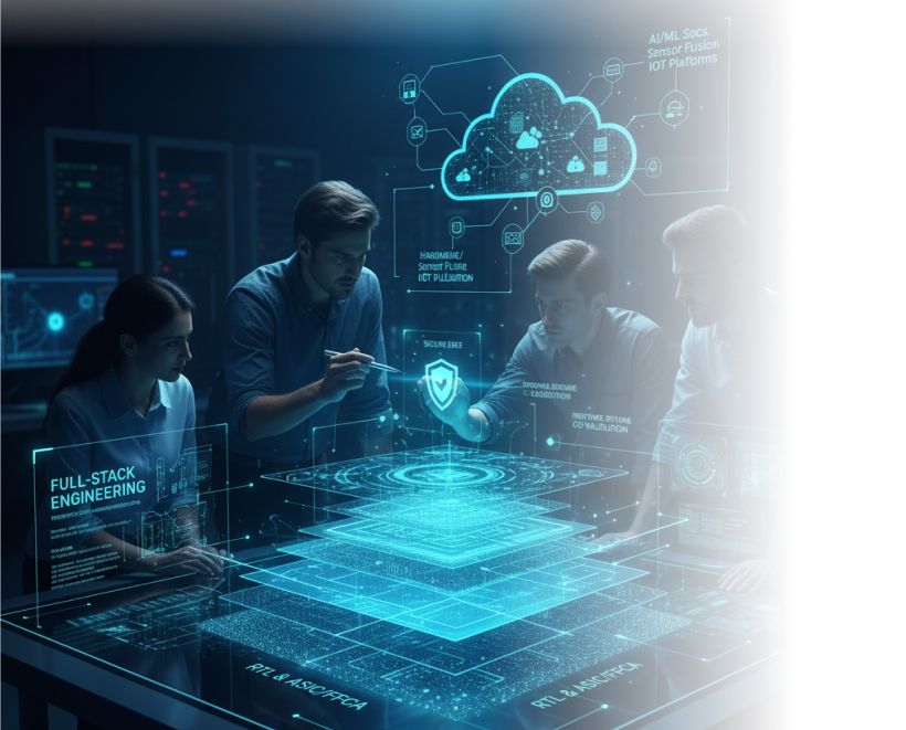 We deliver full-stack product engineering—from RTL to system applications—across diverse domains like AI/ML SoCs, secure edge devices, sensor fusion, ADAS, and smart IoT platforms. Our strengths include ASIC/FPGA design, firmware and Linux development, platform software, and hardware/software co-validation.